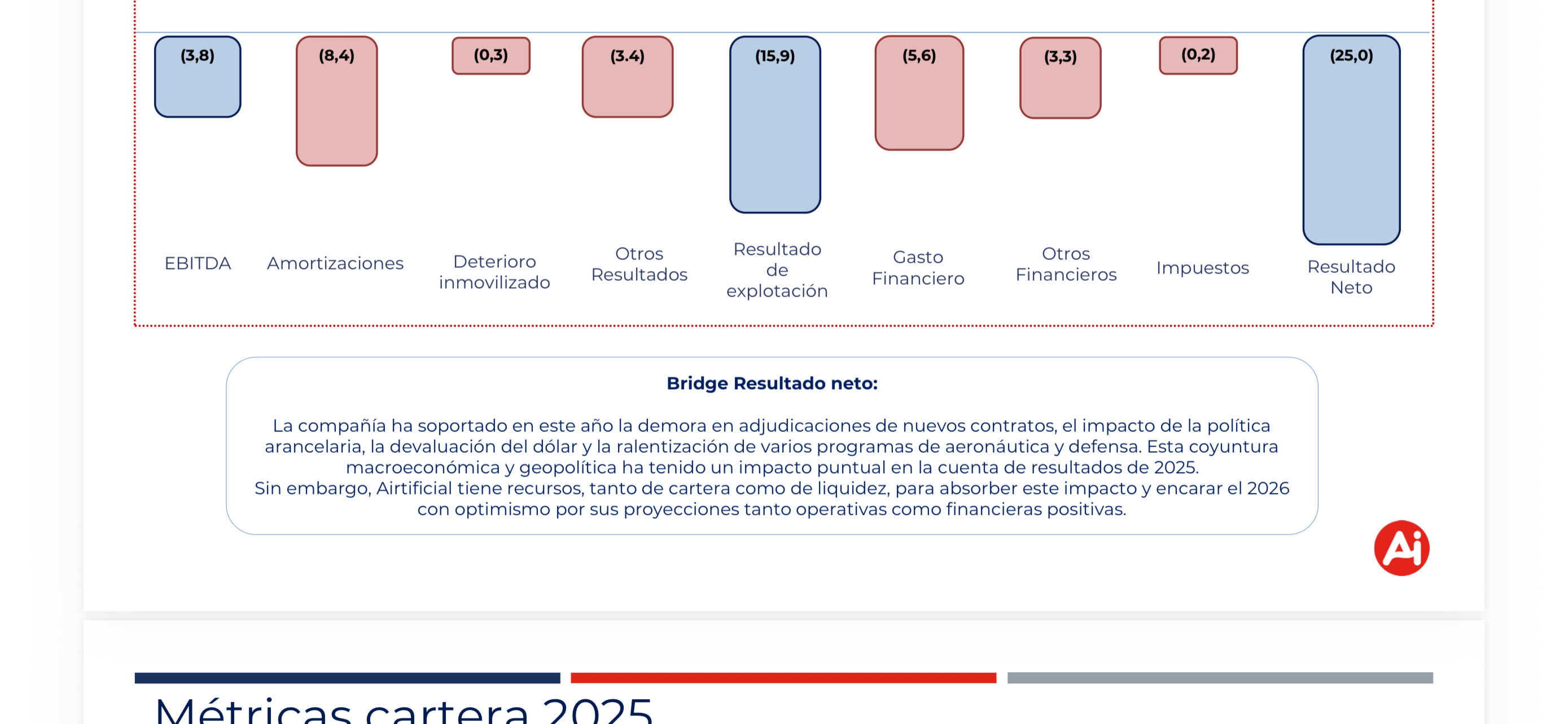 Sin embargo Airtificial tiene recursos tanto de cartera como de liquidez para absorber este impacto y encarar el 2026 con optimismo por sus proyecciones tanto operativas y financieras positivas. “