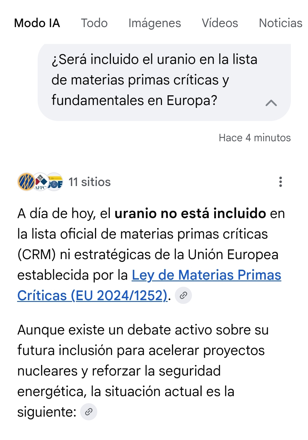 Según mi tÍA, del mismo modo que volvió a ser incluido el uranio en la lista de materias primas críticas en Estados Unidos en 2025, en Europa podría incluirse en la próxima revisión...
