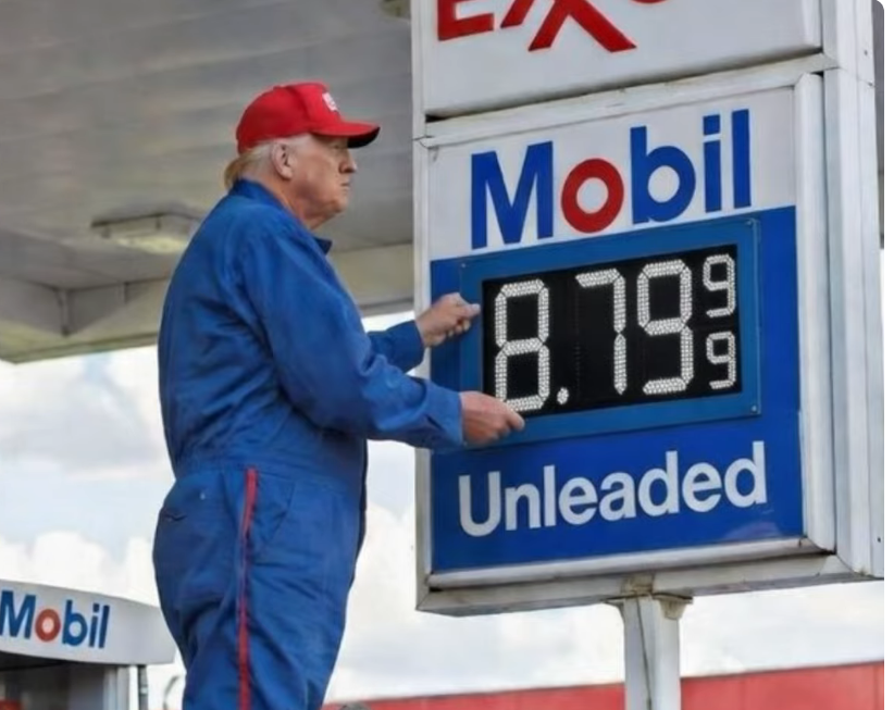 Aquí el zanahorio subiendo el  precio del galon de gasolina en USA...y pensar que alguien tome a este personaje por una persona que no tenga que operarse del coco.