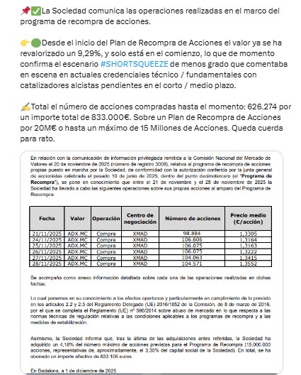 Lateral hasta que lleguen nuevas noticias. Según el CEO las adquisiciones son inminentes, y seguro llegan más contratos relevantes. Mi pregunta es cuando pondrán en valor su división eco. Greendyes