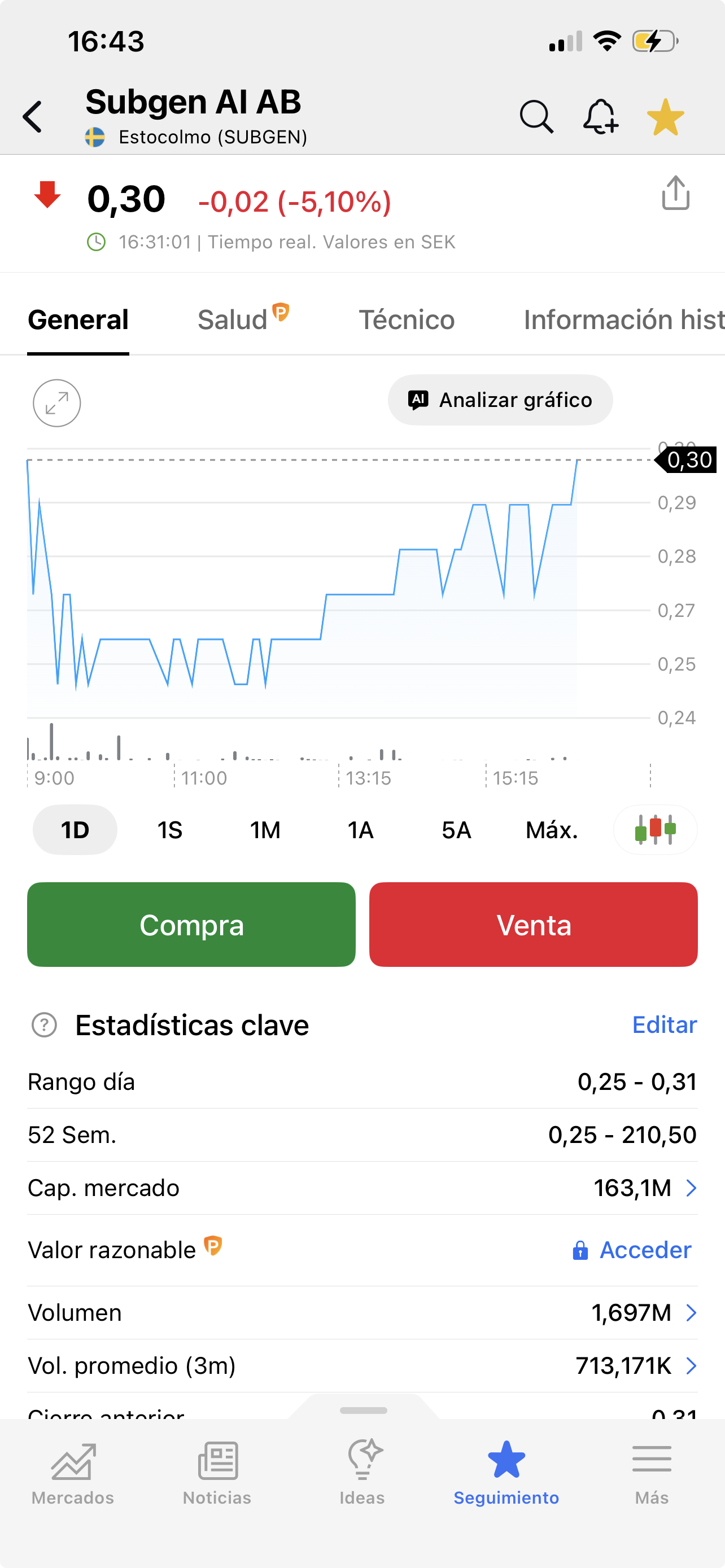 Pues está a 0,30 coronas suecas. La oferta de la OPA era a relación de ayer, a 0,31.