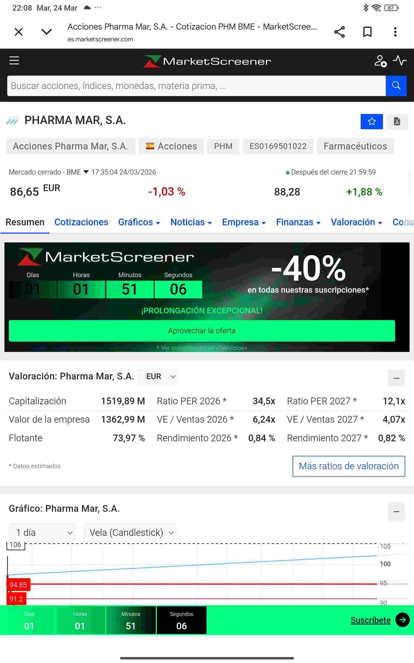Que pocos años llevas en Pharmamar, o si llevas muchos, que poca memoria. Mirate grafico historico d..........