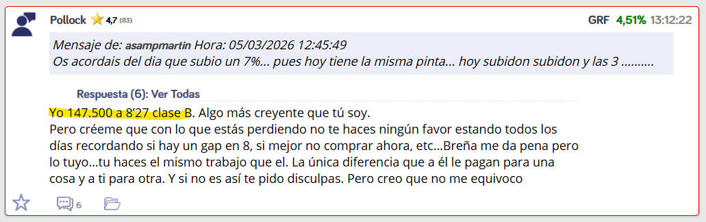 Segun me ha comentado antes, de GRF.B lleva 147.500 titulos a un precio medio de 8,27€, asi que les pierde 95.000 euros