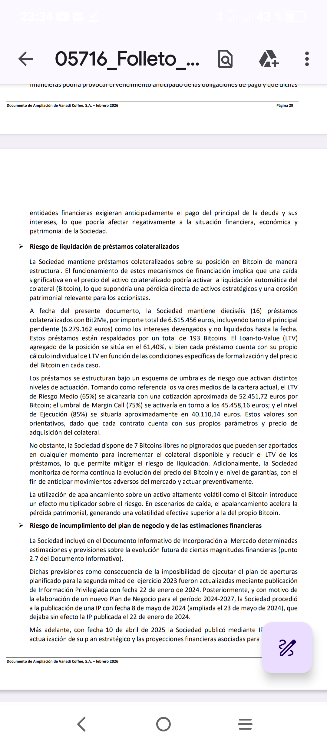 Mantienen una deuda de 6.615.456 euros con Bit2Me,. ( Ver pag. 30 del último documento de ampliación de capital publicado el 24/02/ 2026.